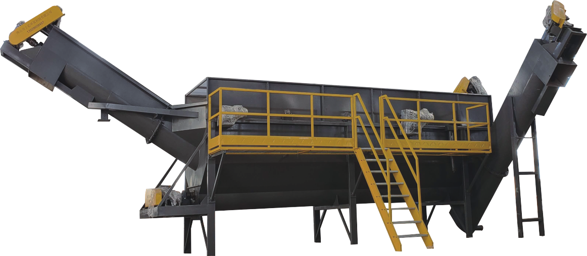 本机为13°或6°盐水或淡水分离池。沉没物由底部螺旋输送机排出脱水;漂浮物由螺旋输送机输送至淡水分离沉淀池进行密度分离。盐水可循环利用节约生产成本。